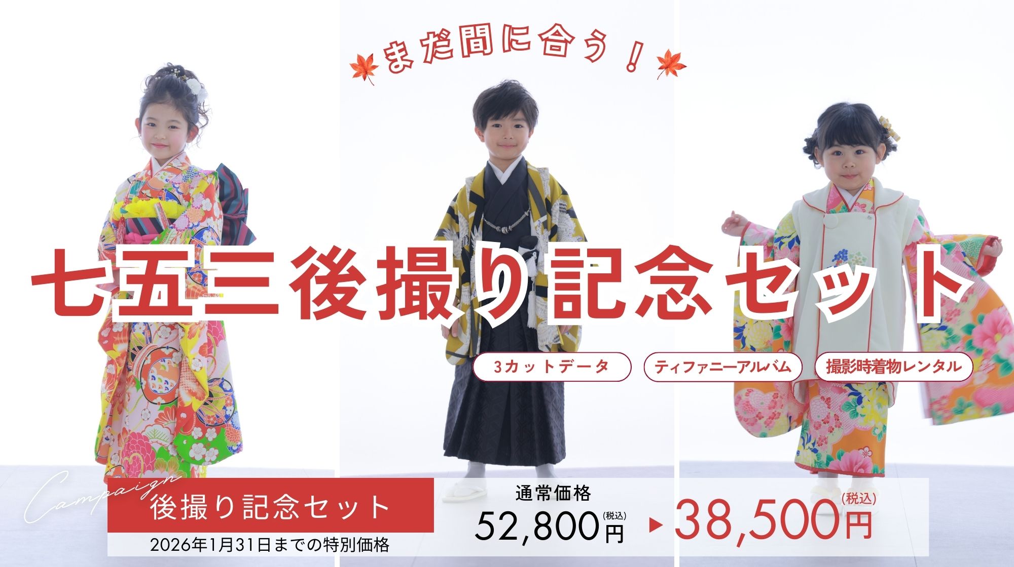 七五三スタジオ撮影プラン平日半額 2026年1月31日(土)まで