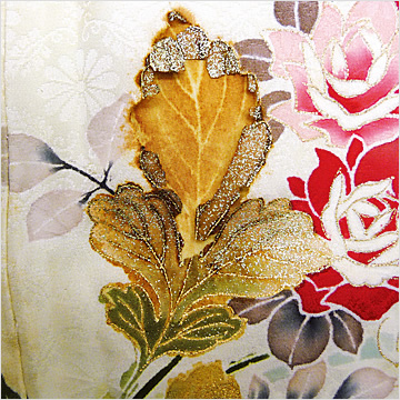 丁寧に再現させるほかにも、広範囲の落ちない汚れに箔をあしらったり、一部を新しい色で染め替えたりして、元の柄を生かした豪華なイメージに一新することも