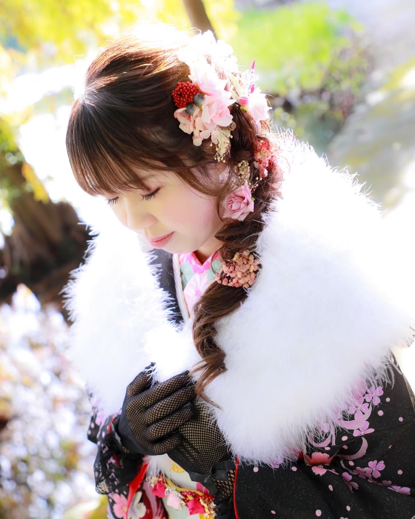 大きなお花で存在感を出した髪飾りも目立つのでおススメ!!