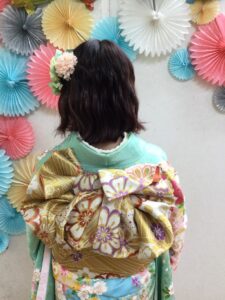 帯を選ぶ時は、前から見た時のトータルコーディネートも大事ですが、後から見てお振袖の雰囲気がより引き立つものを探してみてくださいね♪