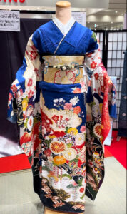 青色のお振袖は、黒色のお振袖よりクールになりすぎず