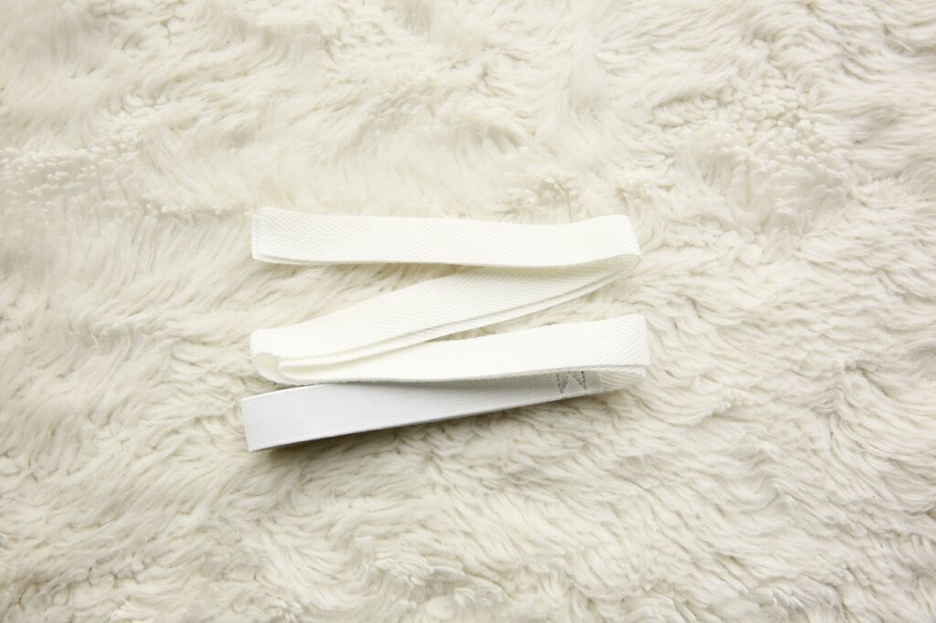 三重紐は三本の平たいゴムが重なっていて、その両端にゴム幅と同じ幅の紐がついたものです。