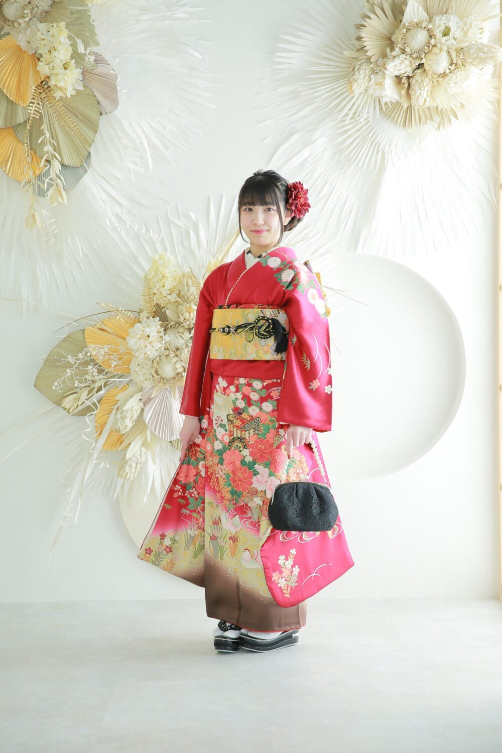 赤のお振袖はお顔をパッと明るく見せてくれます! 同じ赤でも柄でも大きく雰囲気変わりますよ♪