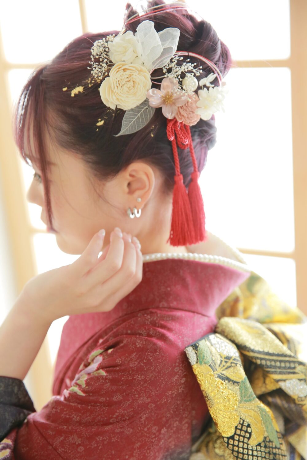 和装によく似合うつるっとシニヨン! 髪が長くなくてもできるヘアの一つでもあるので、成人式までに長さ足りないかも、、 と思っている方はぜひ参考にしてみてくださいね!
