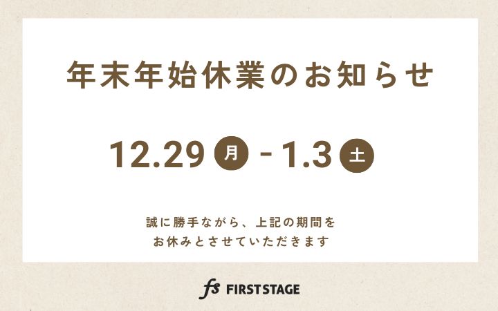 誠に勝手ながら、ファーストステージでは下記の期間を年末年始休業とさせていただきます。