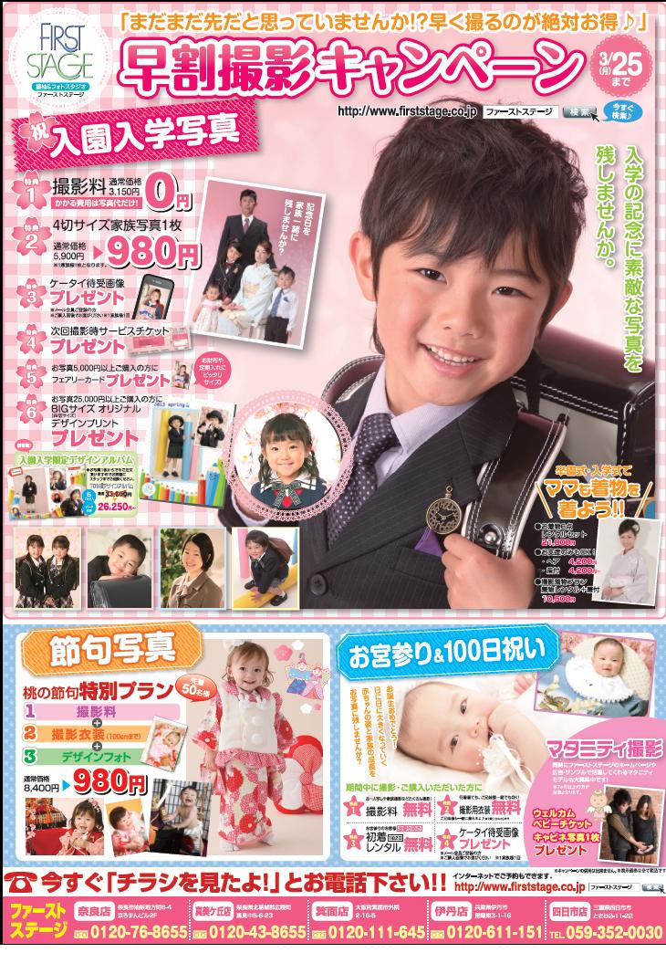 こんにちは。 いよいよ、早撮りキャンペーンがスタートします。 入園、入学、卒園、卒業、節句など とってもお得な特典が盛りだくさんです♪