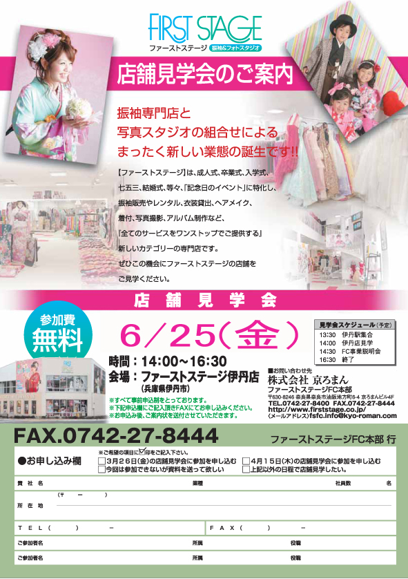 フランチャイズ店舗見学会を下記日程で開催します。 ぜひ、お越しください。