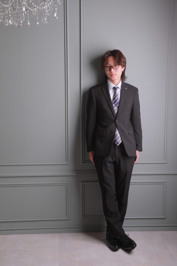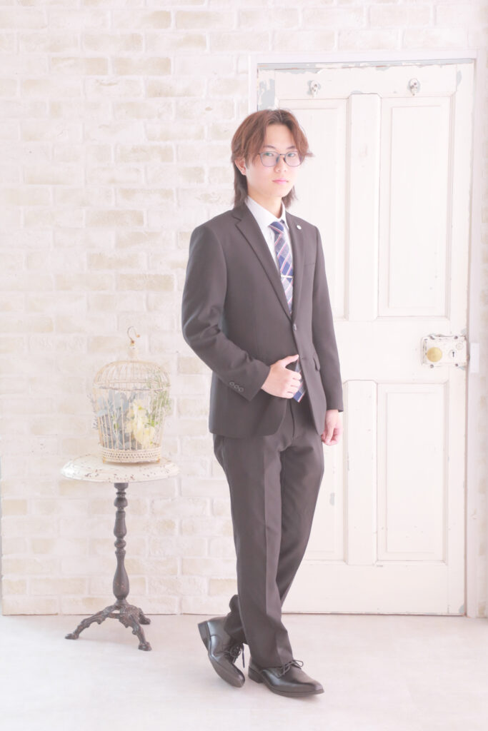 スーツでの写真は、社会人としての第一歩を踏み出す男性の「大人としての姿」を記録します。
