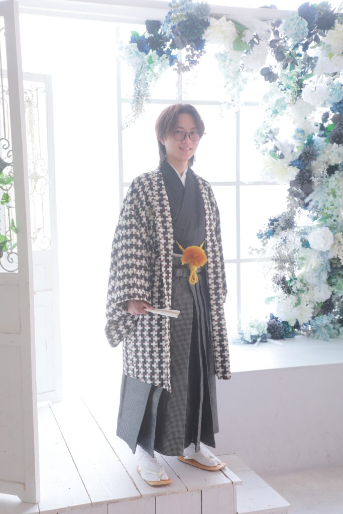 定番の白や黒の袴こそ、成人式で最も男性の凛々しさを引き立てるスタイルです。