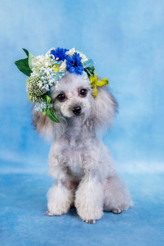 • お花を被るのが苦手なワンちゃんには無理強いせず、ワンちゃんのみの撮影も可能ですのでご安心ください。